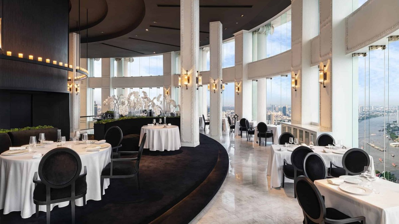 Situé au sommet de l’hôtel Mandarin Oriental, Le Normandie est un temple de la haute gastronomie française à Bangkok. Depuis 1958, ce restaurant iconique séduit ses convives avec des plats raffinés, élaborés avec une précision exemplaire par le célèbre Chef Alain Roux. La vue panoramique sur le fleuve Chao Phraya ajoute une touche magique à cette expérience culinaire, où les plats signatures tels que les « Tronçonnettes de homard Canadien poêlées minute au porto blanc » et le « Tournedos de Wagyu poêlé à la Zingara » transforment chaque bouchée en une véritable fête pour les sens.