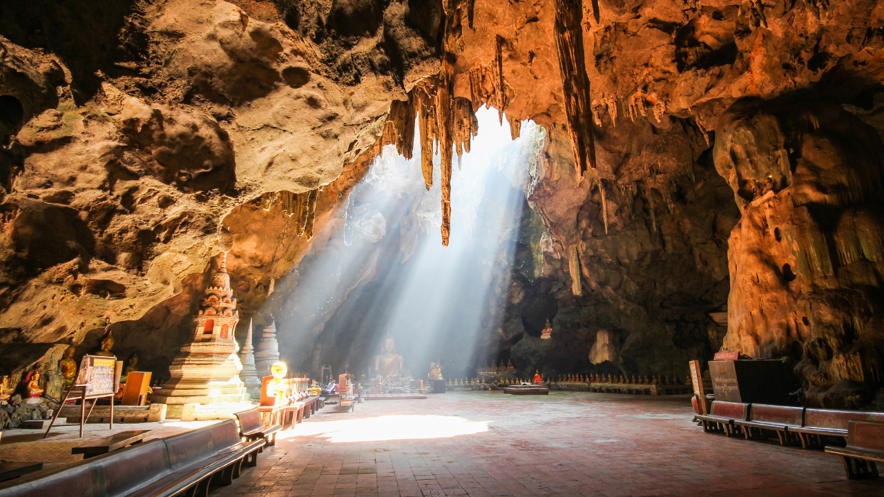 La grotte Tham Khao Luang, abritant une statue de Bouddha baignée de lumière naturelle, est un lieu à la fois spirituel et spectaculaire. À ne pas manquer également : les grottes Tham Phraya Nakhon et Tham Khao Yoi.